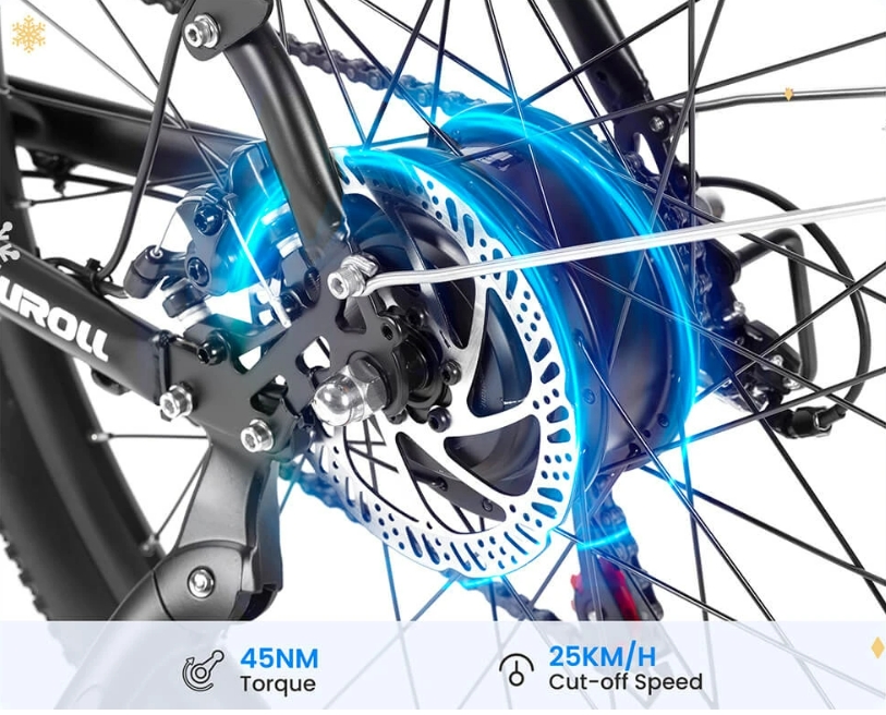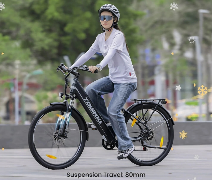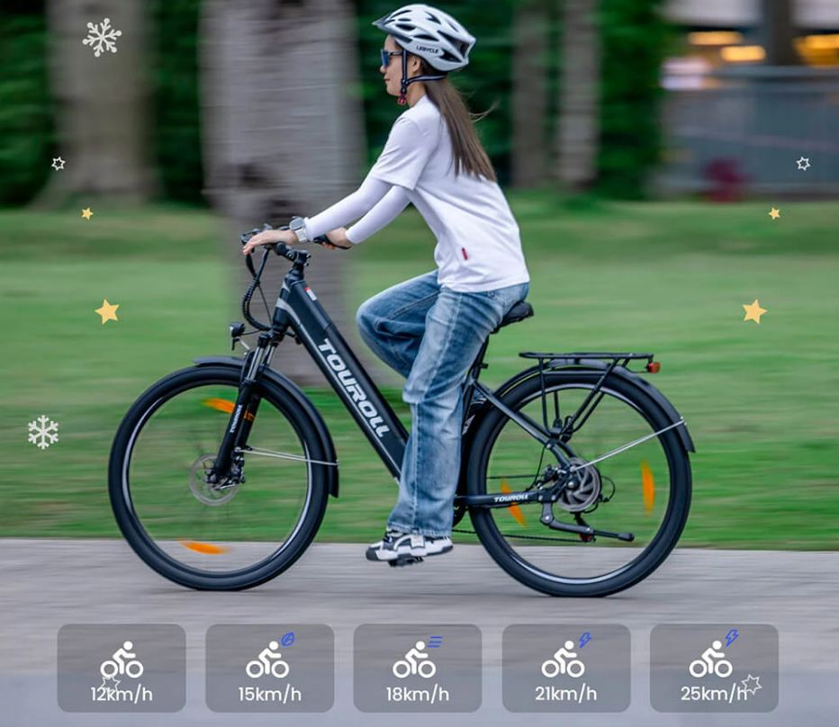 A Touroll J1 ST igazi élménybringázást kínál, amiben a 250 wattos, 45 Nm nyomatékú agymotor játszik főszerepet. A motor csendben, de határozottan segít, akár 25 km/h sebességig, így a városi forgalomban is könnyedén tartod a tempót.