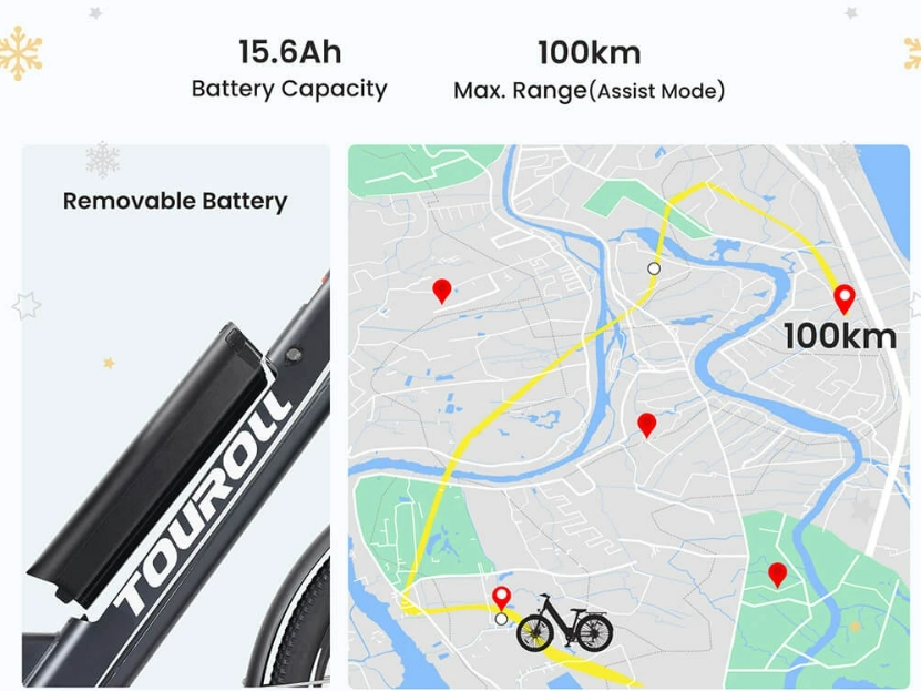 A 15,6 Ah kapacitású akkumulátor akár 100 km-es hatótávot is biztosít rásegítéses üzemmódban, így nem kell aggódnod, hogy lemerülsz egy hosszabb túra során sem.
