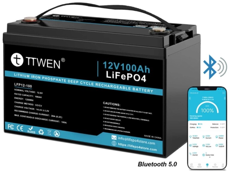 A TTWEN 100Ah-s (1280Wh) okos LiFePO4 akkumulátora az a „bedobod a rendszerbe és elfelejted” kategória kapacitás, beépített 100 A-es BMS hővédelemmel, és 4000+ ciklusos élettartammal lakóautóba, hajóba, napelemhez vagy kempinghez szabva.