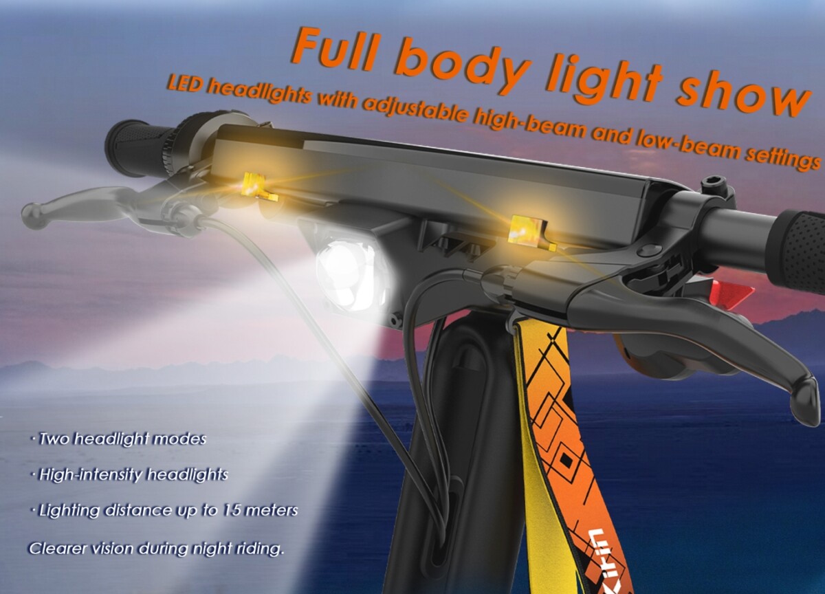 Világításból is komoly felszerelést kapott: állítható LED fényszóróval, hátsó lámpával és irányjelzővel biztosítja, hogy este sem kelljen kompromisszumot kötni a láthatóság terén.