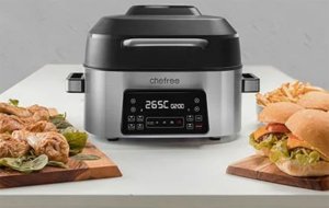 A Chefree AFG0 a valaha volt legötletesebb sütésre használható szerkezet, mert egyesít egy grill és egy forrólevegős sütőt, egészen olcsón. |