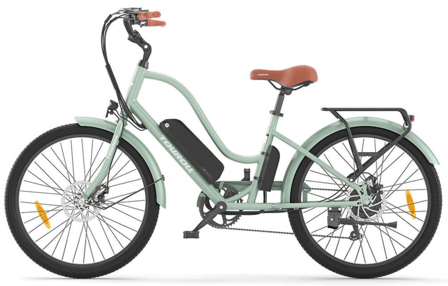A Touroll B2 elektromos kerékpár egy elegáns, retro stílusú, alacsony átlépésű vázzal rendelkezik, amely az állítható kormány és nyereg révén személyre szabott kényelmet nyújt. A meghajtásról egy 250 wattos, 50 Nm nyomatékot leadó hátsó agymotor gondoskodik, amelyet egy 12 mágneses pedálszenzor egészít ki a zökkenőmentes és természetes rásegítés érdekében, akár 25 km/h sebességig.