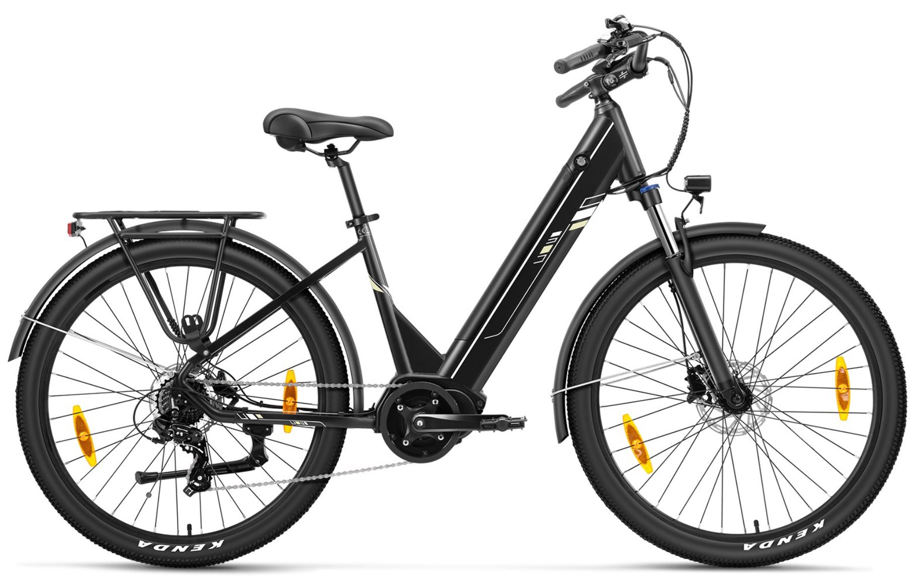 A zökkenőmentes és kényelmes haladást a nagyméretű, 27,5 colos CST gumiabroncsok, a zárható funkcióval ellátott első mechanikus felfüggesztés, valamint a megbízható, 7 sebességes Shimano váltórendszer garantálja. A felhasználói élményt egy intelligens 3,5 hüvelykes LCD-kijelző teszi teljessé, amelyen öt rásegítési szint közül lehet választani, miközben a biztonságos megállásról az első és hátsó mechanikus tárcsafékek gondoskodnak. Az alacsony átlépésű váz, az állítható kormányszár, a Selle Royal nyereg és a masszív csomagtartó mind a kényelmes és praktikus használatot szolgálják a mindennapok és a hosszabb kirándulások során.