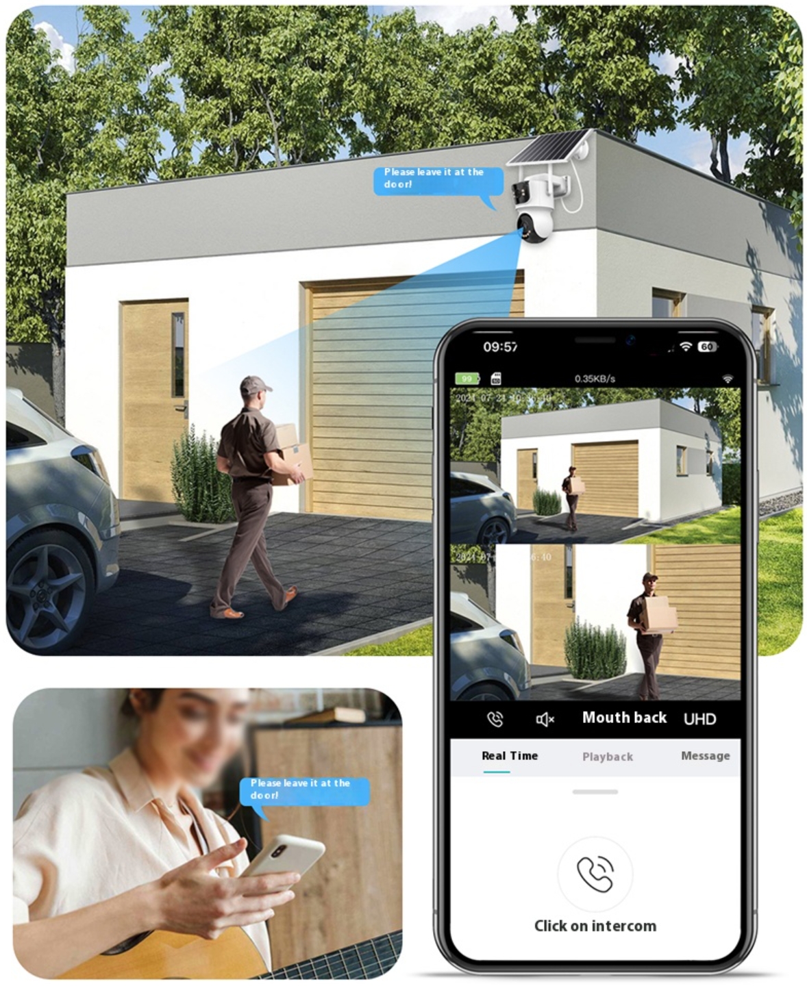 A beépített mikrofon és hangszóró lehetővé teszi a kétirányú kommunikációt, így a kamera segítségével beszélhetünk a látogatókkal, vagy akár figyelmeztethetjük a betolakodókat.