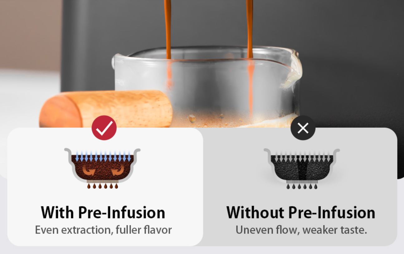 Képes előáztatásra is, ami segít a tökéletes főzésben, mert így a tényleges főzés során a víz rendesen átjárja a kávét, nem alakulnak ki csatornák, amelytől részleges lehet a kávé főzése, nem tökéletes.