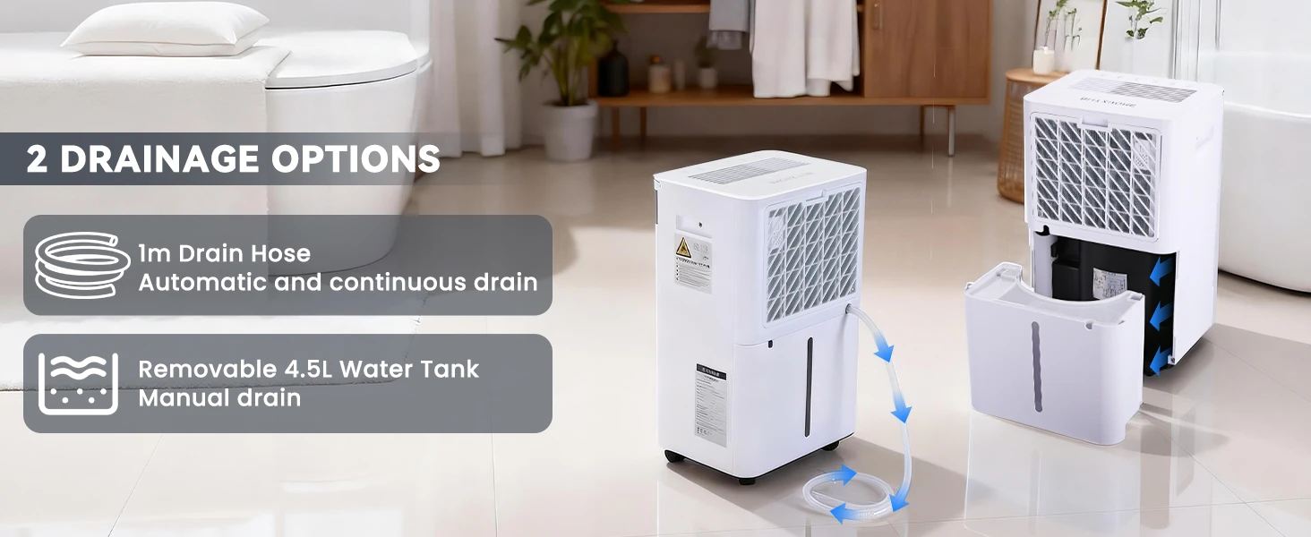 A 4.5 literes tartály azért lényeges, mert a párátlanítók használata akkor válik idegesítővé, ha túl gyakran kell üríteni. Nyilván ez mindig attól függ, mennyire nedves a lakás, hányan vagytok otthon, mennyit főztök, teregettek-e bent, de egy ekkora tartály már nem az a kategória, amit napi többször kell nézegetni.
