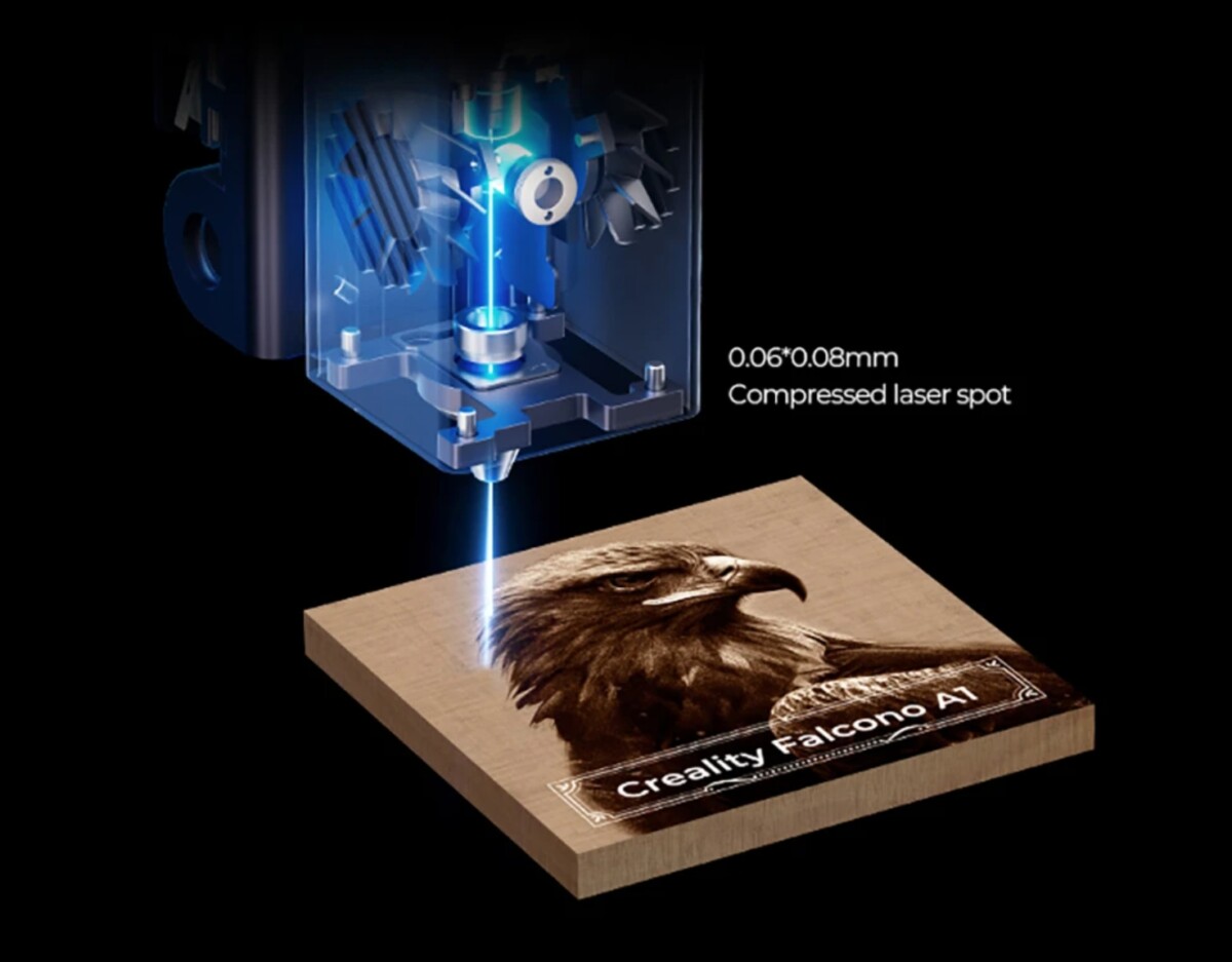 A Creality Falcon A1 olyan lézergravírozó rendszer, amelyet kifejezetten arra terveztek, hogy az alkotási folyamatot a lehető legkevesebb előkészülettel lehessen elkezdeni.