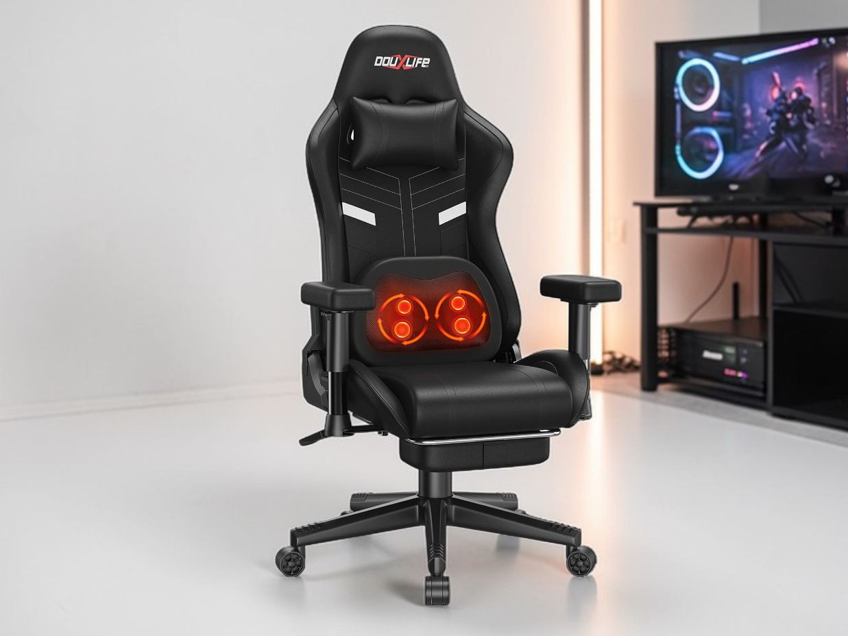 A Douxlife GC-RC03 alapvetően egy kényelmes, komolyabb forgószék, de a beépített motorokkal meg is masszíroz, ami egy hosszabb, vagy éppen egész napos ülés esetén jól esik a megfáradt deréknak.