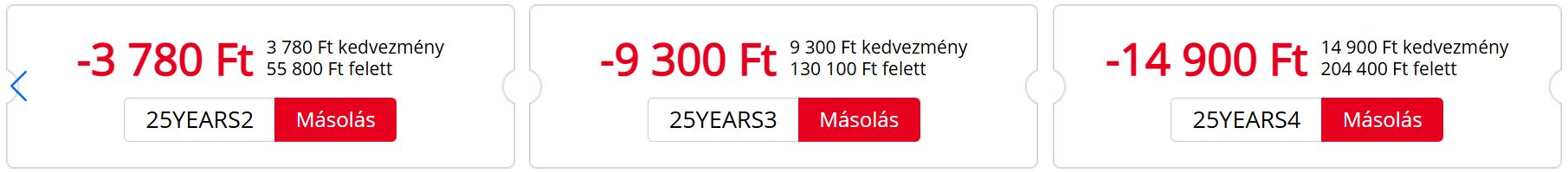 55 800 Ft felett 3780 Ft kedvezményt ad ez a kupon: 25YEARS2