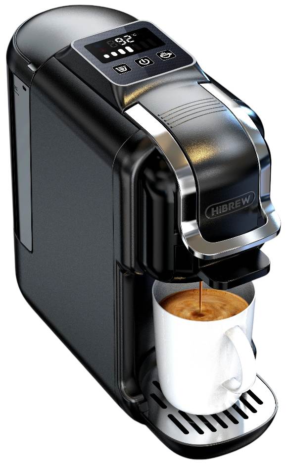 Ilyen a HiBREW H2C, csak azzal a nagy különbséggel, hogy képes főzni Nespresso, Dolce Gusto, Lavazza kapszulából és egyszerű őrölt kávéból is – nem is akárhogy, mert állítható a víz mennyisége, a hőmérséklet és az előáztatás is.