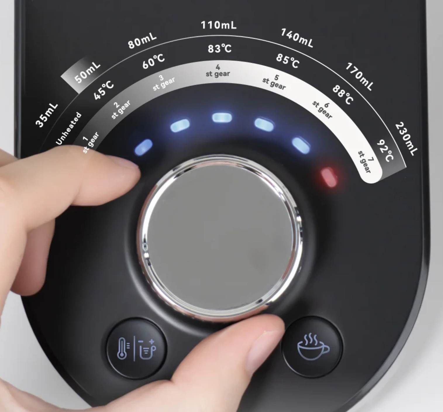 A hét hőmérsékleti fokozat pedig lehetővé teszi, hogy minden kávétípushoz megtaláljuk az optimális hőmérsékletet és hidegvízzel is főzhetünk (konkrétan a hőmérsékletek lehetnek: melegítés nélkül, 45, 60, 83, 85, 88, 92°C).