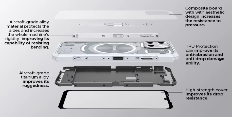A titánötvözet tovább növeli a strapabírást, miközben a TPU védelem hatékonyan csökkenti a kopás és esés okozta sérüléseket. A nagy szilárdságú burkolat még tovább javítja az ütésállóságot, ezzel biztosítva a készülék hosszú élettartamát és megbízhatóságát.