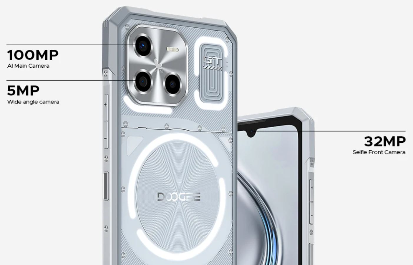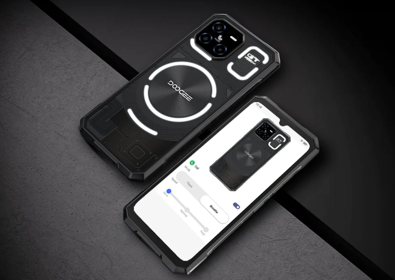 A DOOGEE Blade GT Ultra futurisztikus dizájnnal hódít a Nothing-tól átvett LED gyűrűkkel és egyéb LED elemekkel – csak jóval nagyobb mennyiségben.