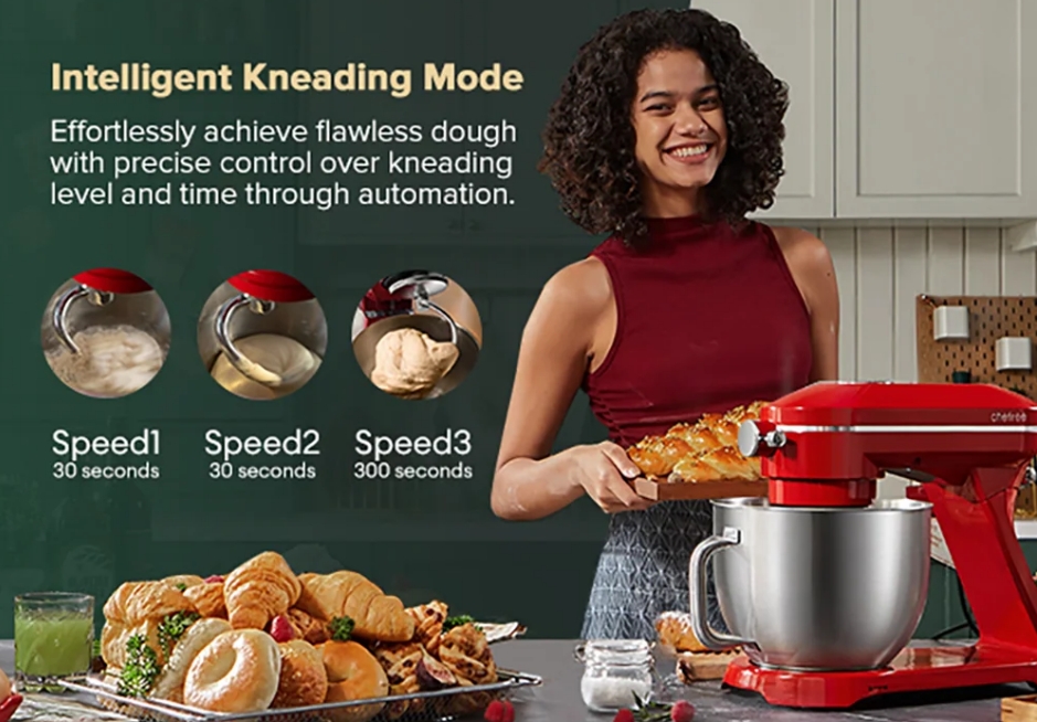 A Chefree M500 nem csupán egy keverő, hanem egy igazi multifunkciós robotgép. A 360°-os keverőrendszer biztosítja, hogy minden hozzávaló tökéletesen elegyedjen – legyen szó kenyértésztáról, habról vagy krémekről.