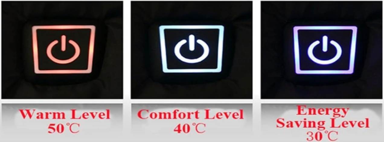 A hő termeléséhez áram kell, amit egy power bank ad és beállítható 30, 40, 50°C-ra is.