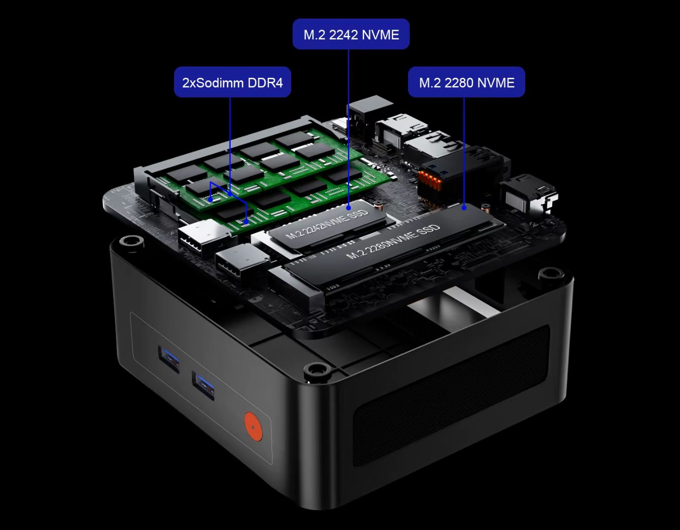 Eléggé átlagos mini PC-ről van szó a dizájn tekintetében, viszont némi dizájn extraként kapott egy piros bekapcsoló gombot.