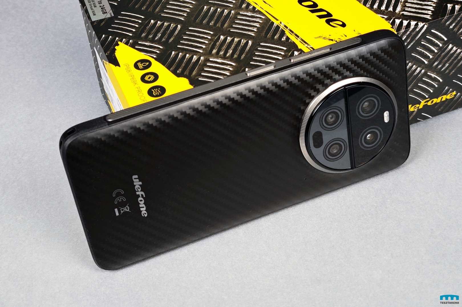 Bár ízlés dolga, de azért a hátlap meglehetősen jól néz ki, a teszt változat karbon borítást kapott és egy kör alakú, látványosabb kamera szigetet.