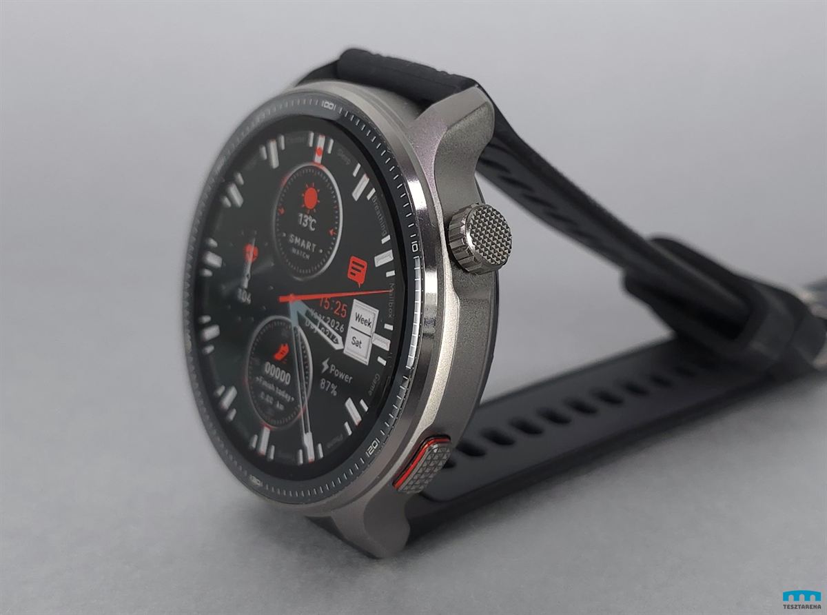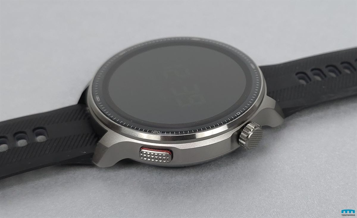 A vízállósága 3ATM és az óratok 48mm-es, 12mm vastag (14mm a szenzorokkal) és 65 gramm a gyári szíjjal, szóval viszonylag könnyű ahhoz képest, hogy eléggé masszív.