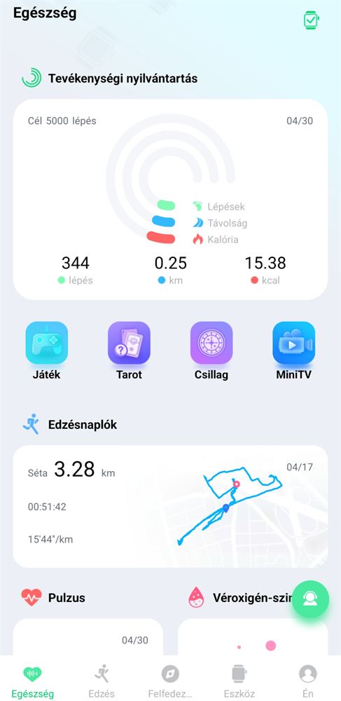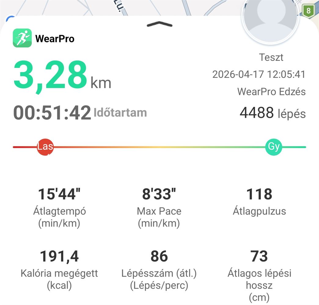 A WearPro alkalmazás tartozik hozzá, amely átlagos felületet ad, magyar nyelven.