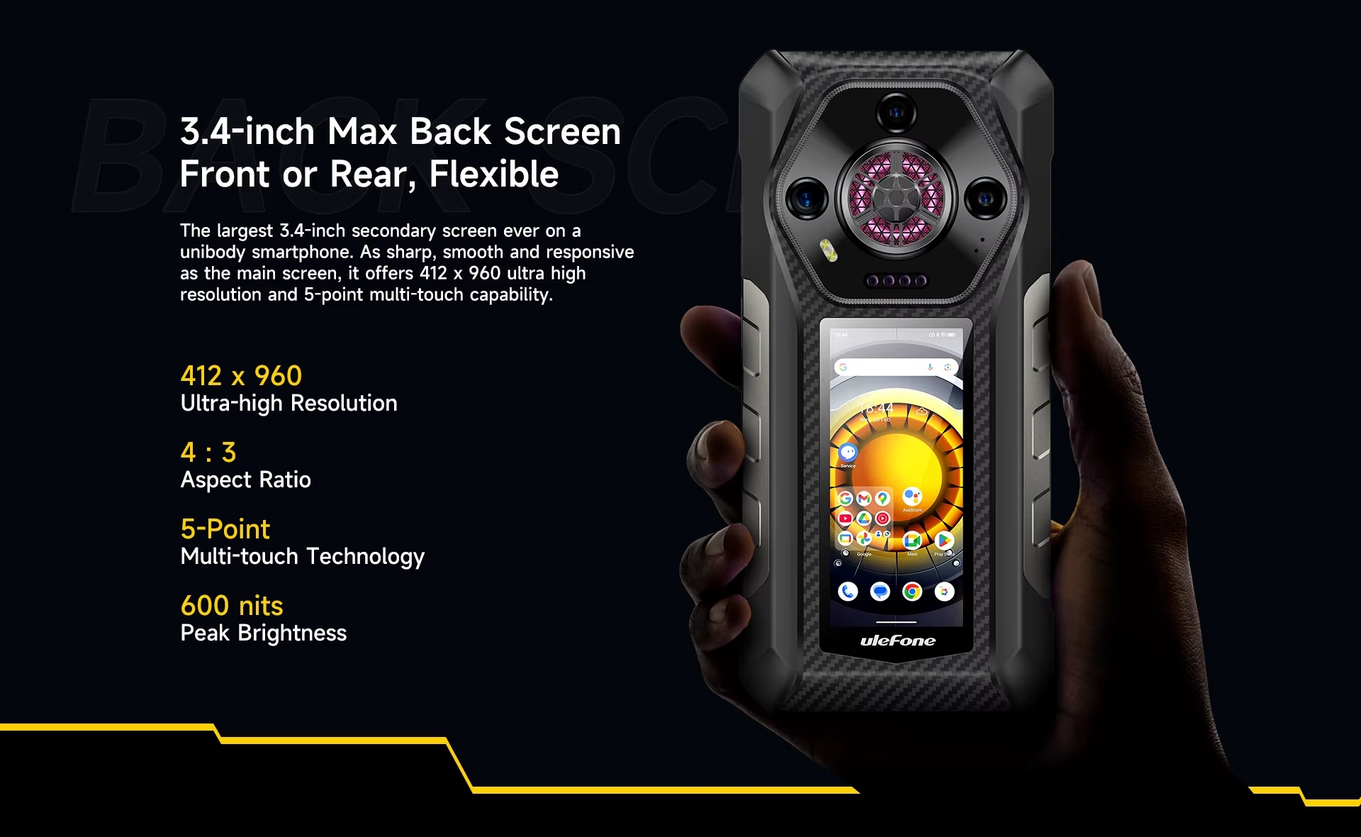 A Ulefone Armor 30 Pro legnagyobb érdekessége az, hogy a hátlapon van egy akkora kijelző, amely régebben az okostelefonok normál kijelzője volt.