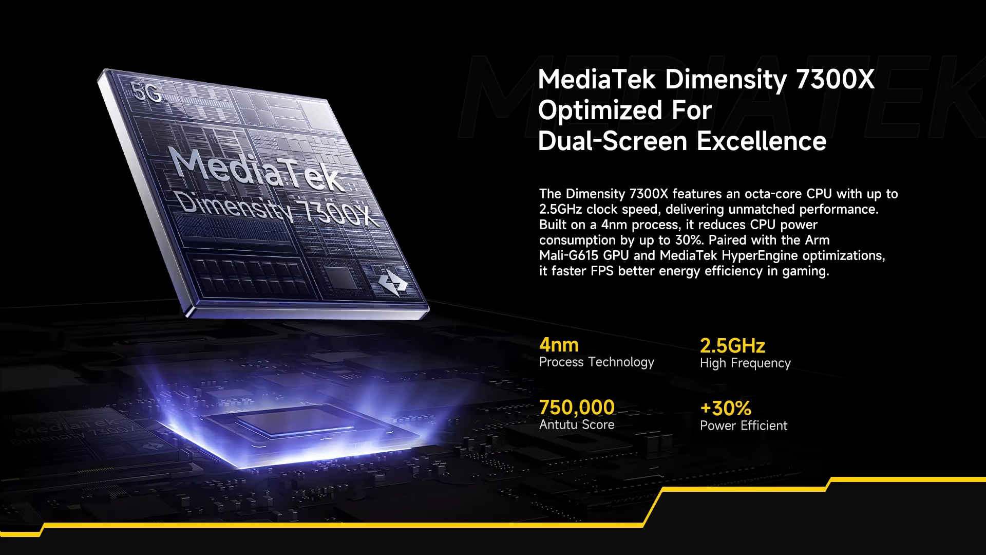 Az Armor 30 Pro-t a MediaTek Dimensity 7300X működteti, amely egy 4nm-es AI-chip és nemcsak energiatakarékos, de nyers erőben is ott van (AnTuTu 750 000 pont).