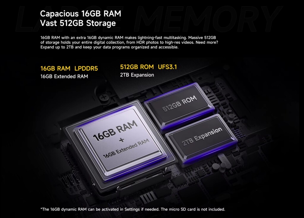 A 16 GB LPDDR5 RAM bármire elég, ahogy az 512 GB UFS 3.1 tárhely is (ami akár 2TB-tal is bővíthető).