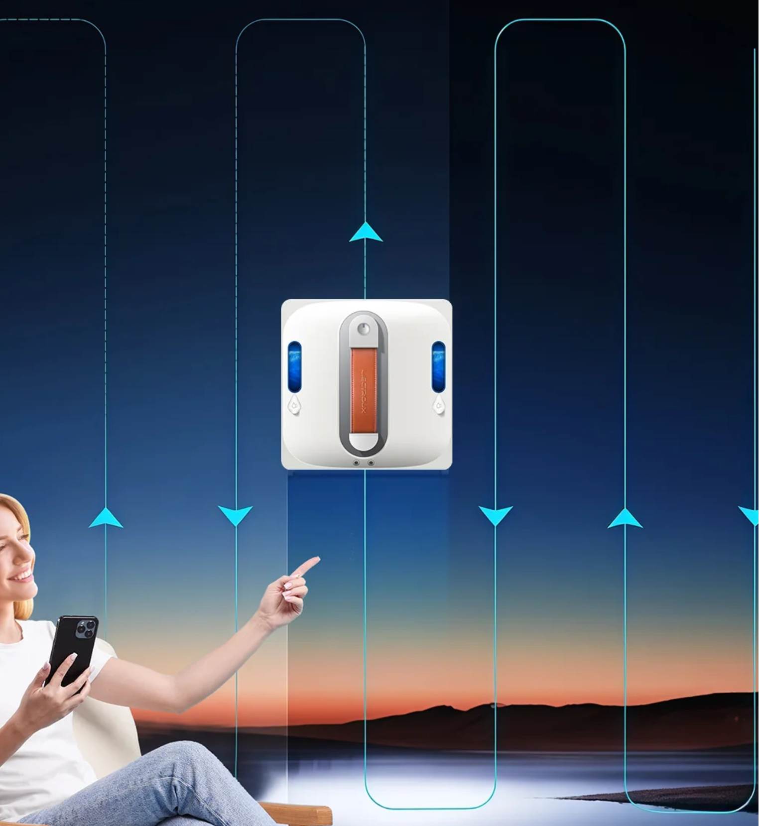 A szívóereje komoly, eléri a 8000 Pa-t, ami azt jelenti, hogy stabilan rátapad az üvegre és nem csúszkál, miközben dolgozik. Ehhez egy speciális kendőt használ, ami felszedi a port, a vízfoltokat és a makacs szennyeződéseket is. Az automatika figyeli a felületet, és folyamatosan szabályozza az erőt, hogy mindig optimális legyen a tapadás. Az intelligens rendszer érzékeli, ha elér a szélig, ilyenkor automatikusan irányt vált, nehogy leessen.