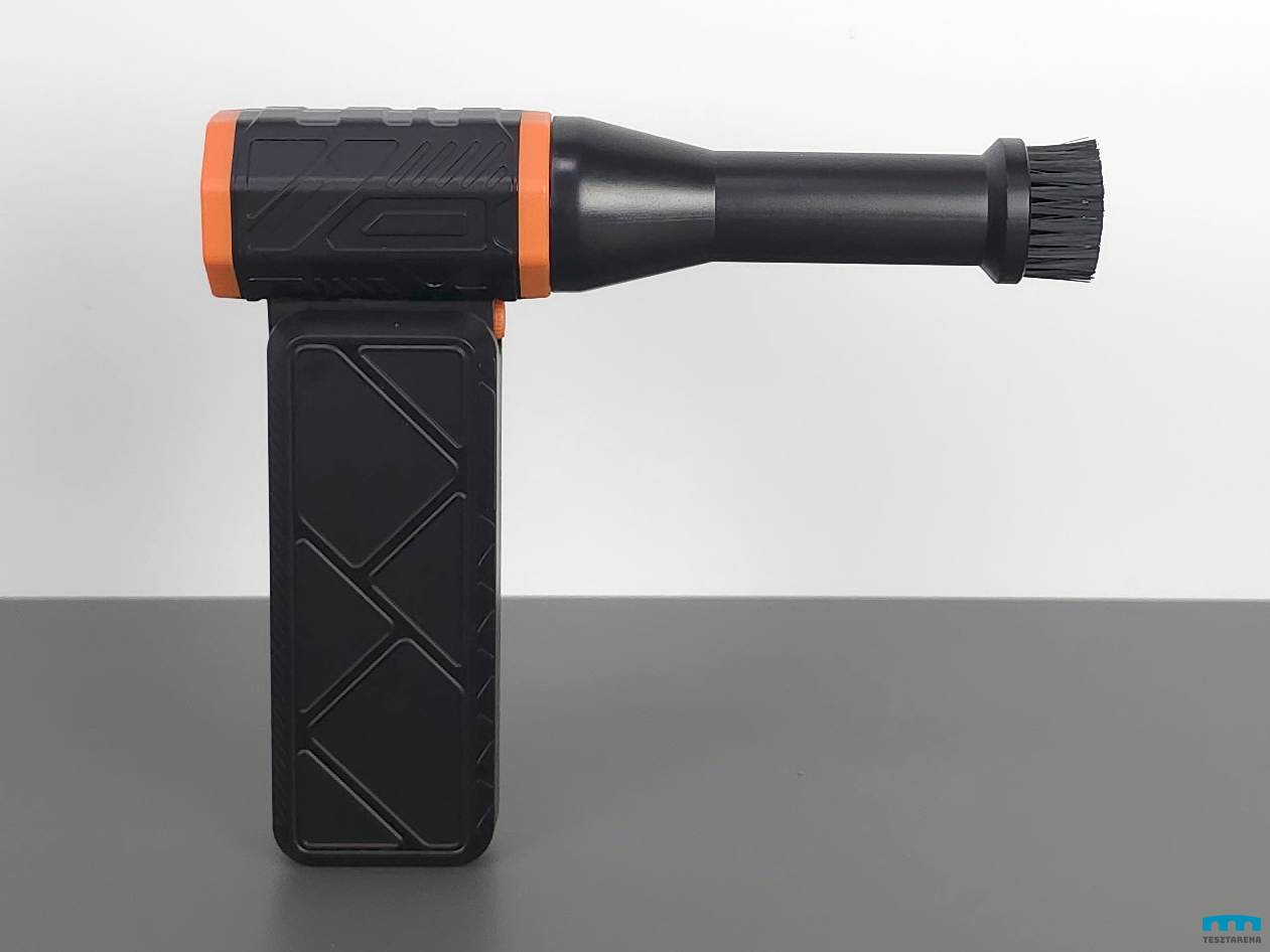 A szűkítőt le lehet venni, ha nagyobb területet kellene lefedni gyorsabban, ráadásként kapott egy kis LED világítást is, ami pont akkor jön jól, amikor a gépház mélyén kell dolgozni.