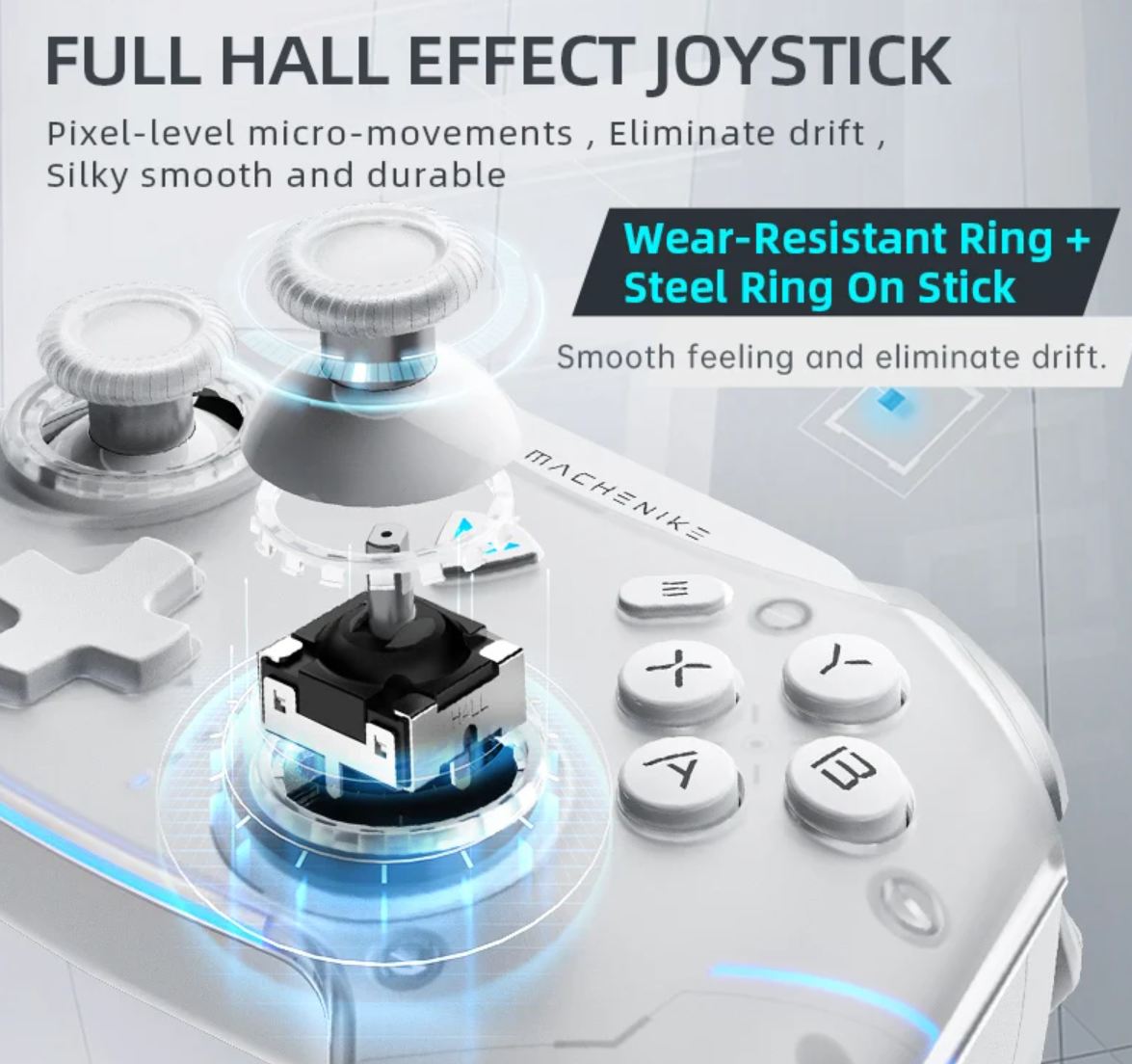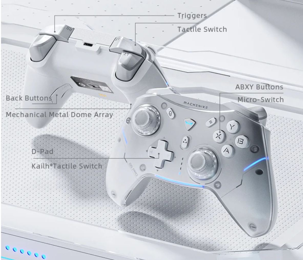 A Machenike G5 Pro egy innovatív kialakítású, komoly játékosok számára tervezett gamepad, amely a legmodernebb technológiákat ötvözi a testreszabhatósággal és a kényelemmel, hogy egy sokoldalú és precíz irányítást tegyen lehetővé.