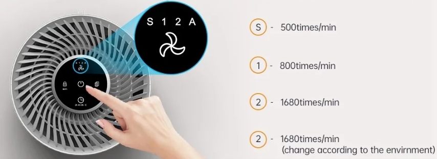 A beépített légminőség-érzékelő valós időben figyeli a levegő tisztaságát, és különböző színekkel jelzi annak állapotát: a zöld fény a jó, a sárga a rossz, a piros pedig a nagyon rossz légminőséget jelzi. Az automatikus üzemmódban a készülék önállóan szabályozza a ventilátor sebességét a mért légminőség alapján.