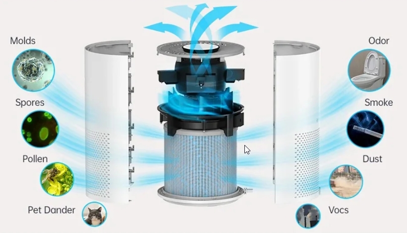 A négyfokozatú szűrőrendszer – amely előszűrőből, nanoszűrőből, aktív szénszűrőből és H13 True HEPA szűrőből áll – képes a levegőben található részecskék 99,97%-át kiszűrni, beleértve a port, pollent, állatszőrt, füstöt és egyéb allergéneket. A légtisztító különös előnye, hogy ozonmentes működésű, nem használ UVC fényt vagy negatív ionokat, így biztonságos választás gyermekek és asztmások számára is.