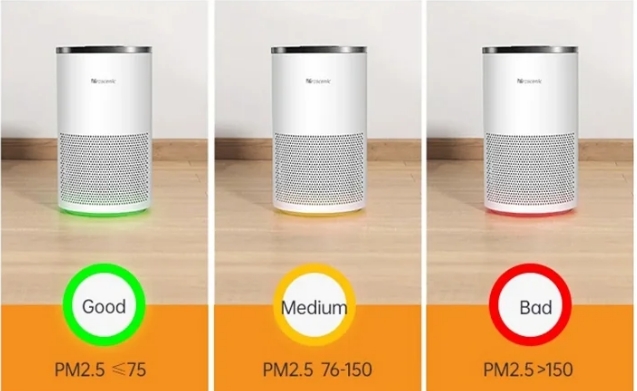 A beépített légminőség-érzékelő valós időben figyeli a levegő tisztaságát, és különböző színekkel jelzi annak állapotát: a zöld fény a jó, a sárga a rossz, a piros pedig a nagyon rossz légminőséget jelzi. Az automatikus üzemmódban a készülék önállóan szabályozza a ventilátor sebességét a mért légminőség alapján.
