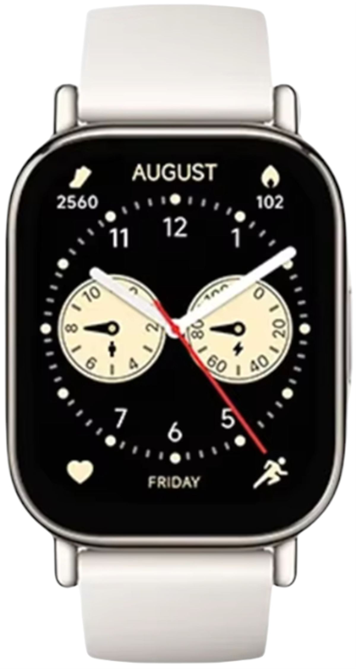Egész tipikus négyszög okosóra jó nagy, lényegében 2″ méretű és 410 x 502 pixel felbontású AMOLED kijelzővel.