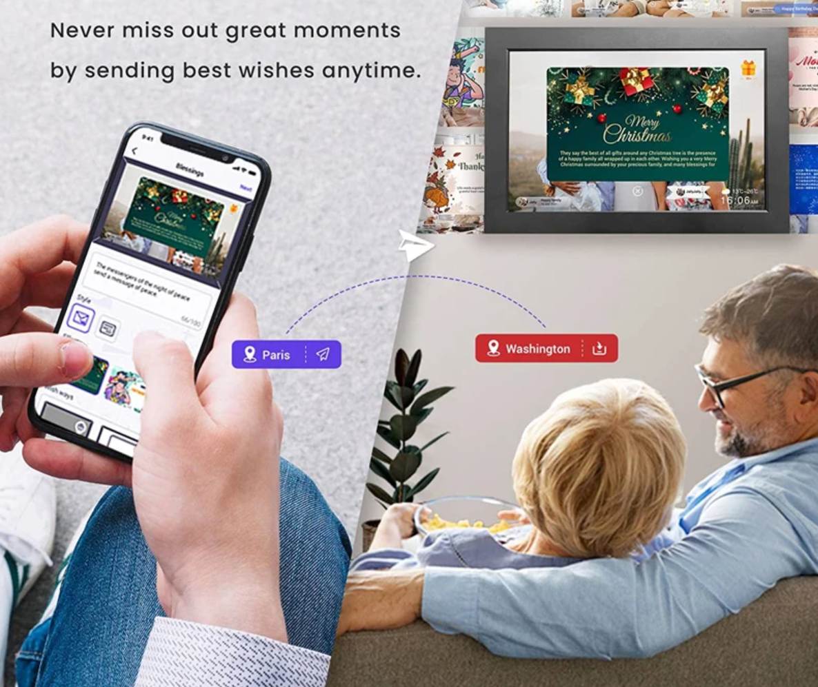 Viszont ez egy okos képkeret, ami azt jelenti, hogy telefonnal is használható távolról is, vagyis ha éppen valahol máshol vagy, akkor is feltöltheted a legújabb képeidet és azonnal meg is jelennek. Ezáltal egy nagyon különleges ajándék is lehet.
