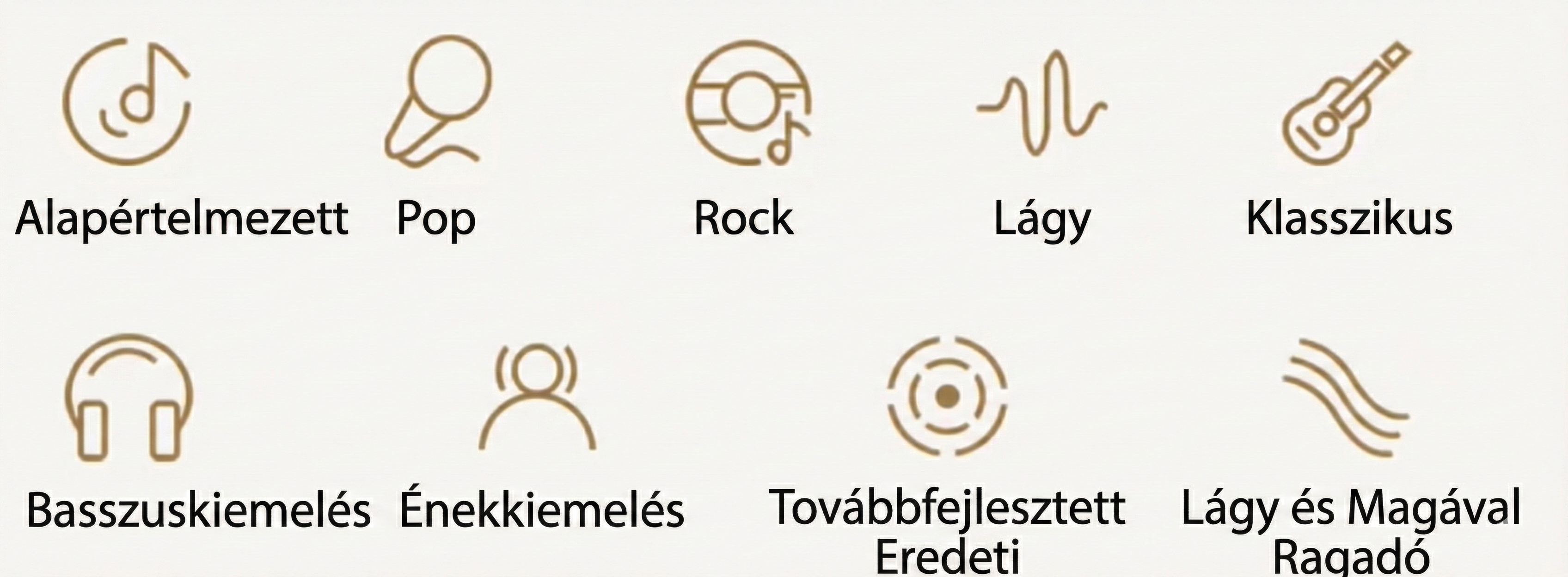 De nem csak a hangzás, hanem az érintőgomb funkciók is átállíthatók és aktív zajcsökkentés is van egész jó, 45dB mértékig.