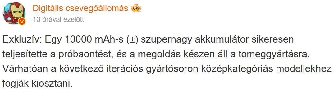 Megbízható iparági források, köztük egy jól ismert informátor szerint a REDMI 10 000mAh körüli akkumulátor próbagyártása már befejeződött, és a tömeggyártás hamarosan elindul. Így minden jel arra utal, hogy a Xiaomi és a REDMI az elsők között építheti be ezt az úttörő megoldást valamelyik közelgő középkategóriás telefonjába.