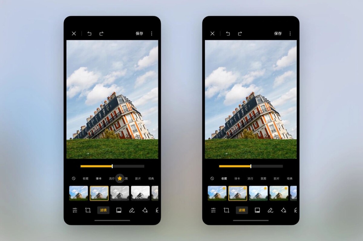 A szűrőrendszer jelentős fejlesztéseken esett át a továbbfejlesztett előnézeti képességekkel. A felhasználók mostantól az eredeti képek összehasonlítását is láthatják a szűrőeffektusok mellett a miniatűr előnézetekben, így könnyebben kiértékelhetik a különböző megjelenéseket az alkalmazásuk előtt. Ezenkívül a kedvenc szűrők hosszú megnyomásával menthetők, így személyre szabott gyűjtemény hozható létre.