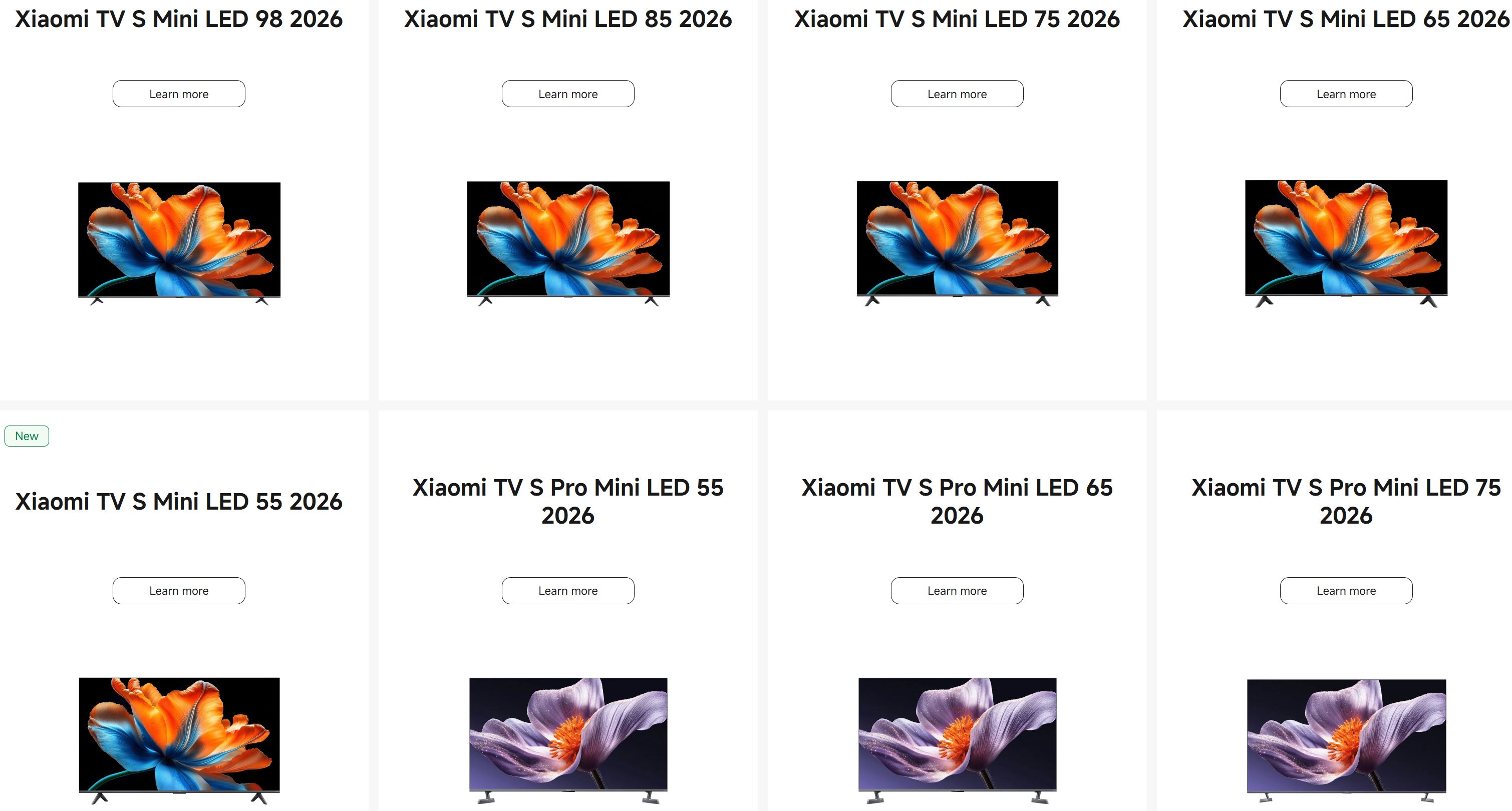 A Xiaomi TV S Mini LED 2026 sorozat több méretben érhető el, 55″, 65″, 75″, 85″ és 100″ változatokban.