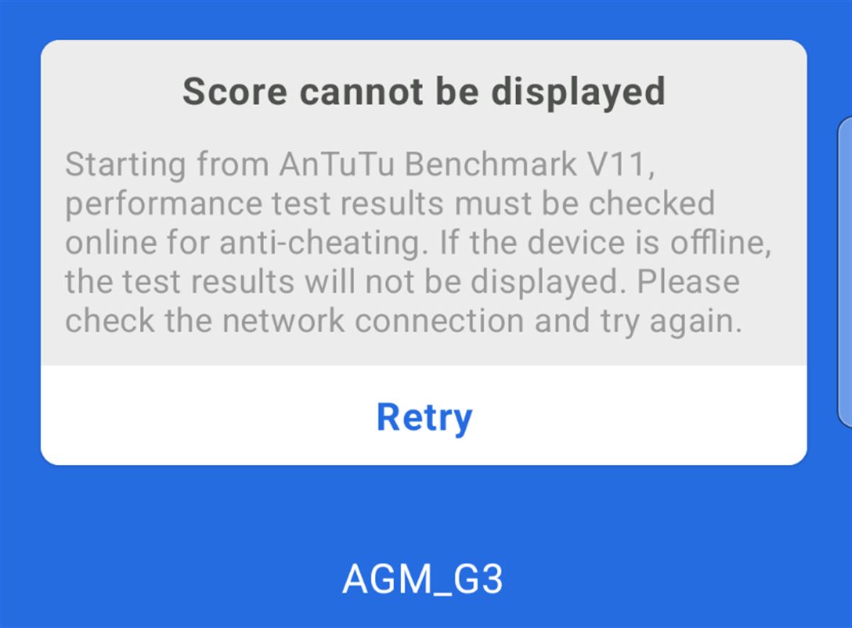 Az AnTuTu lefutott, de valami baja volt, nem írta ki az eredményt.