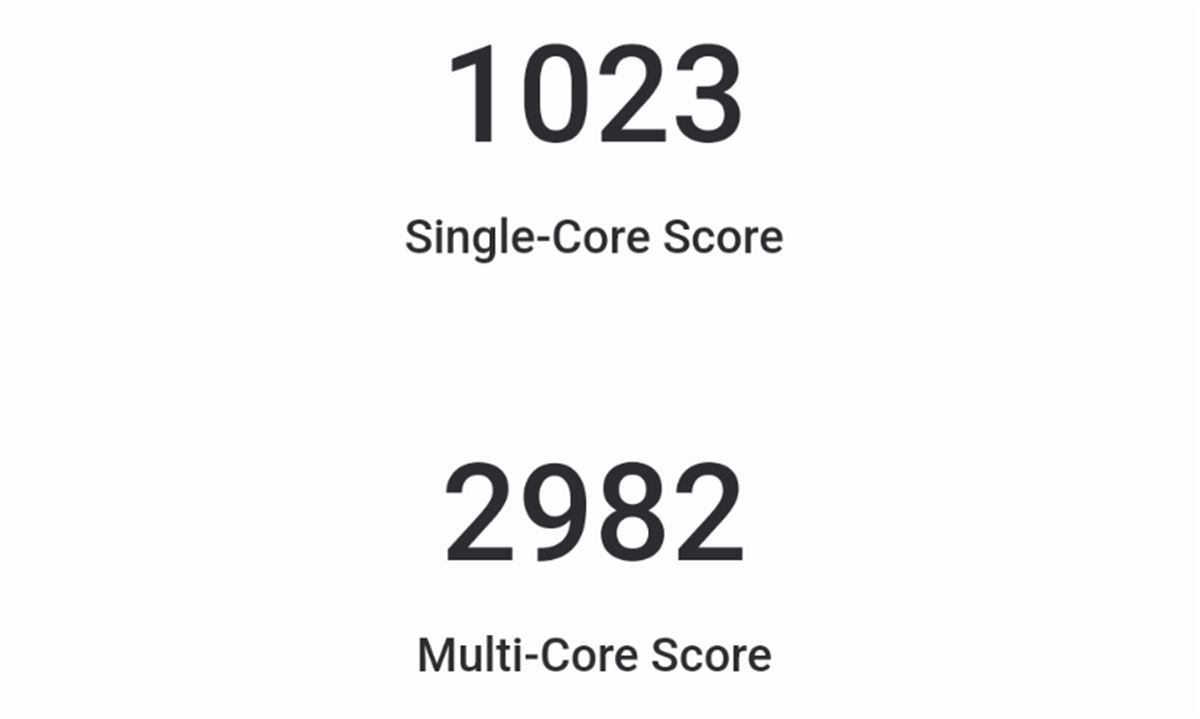 A Geekbench viszont gond nélkül működik, a pontszáma 1023 egy magos és 2982 több magos esetben.