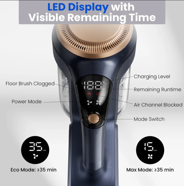 Kétféle üzemmód közül választhatsz: az Eco mód hosszabb üzemidőt, a Max mód pedig extra erőt ad, ha szükséges. A LED kijelzőn mindig látod, mennyi időd van még hátra, melyik üzemmódban dolgozol, sőt, karbantartási figyelmeztetéseket is kapsz.