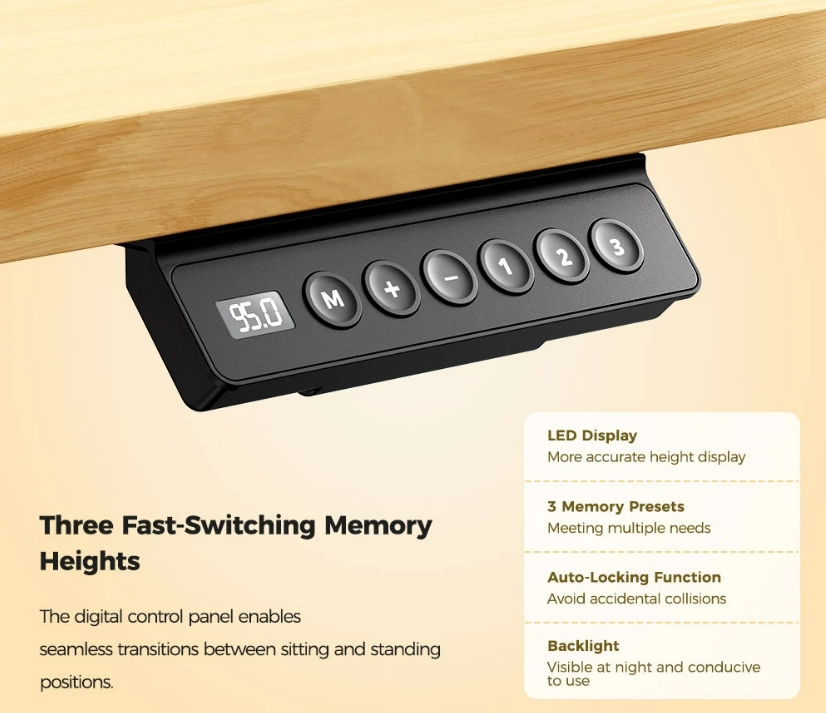 Az ACGAM JSZ-3 elektromos állítható asztalváz fehér színével és masszív acél szerkezetével azonnal magára vonja a figyelmet. A sima felületek, a széles talpak és a digitális vezérlőpanel modern, professzionális hangulatot kölcsönöznek bármelyik irodának vagy otthoni dolgozósaroknak. A szerkezet nemcsak stabil, de igazán elegáns is – végre egy olyan munkahelyi társ, ami jól is néz ki.