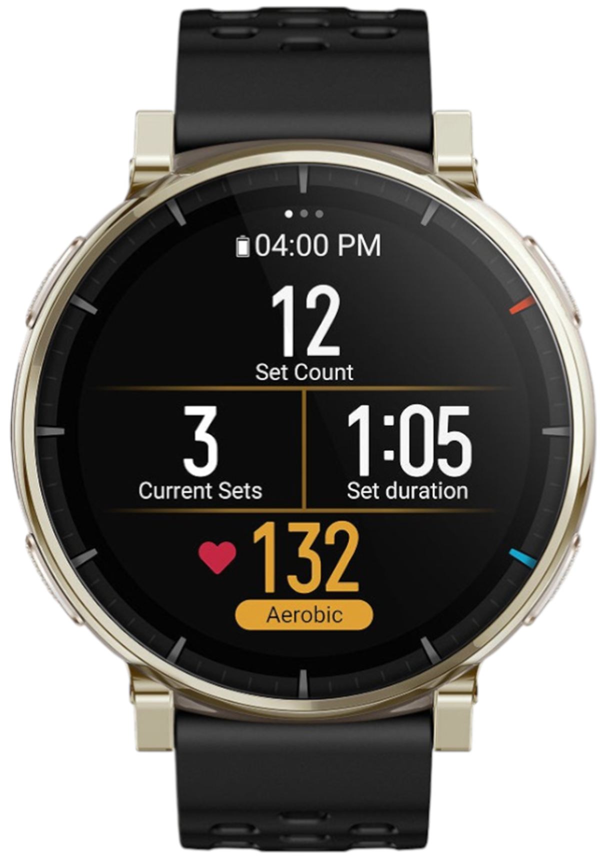 Az Amazfit Active 3 Premium érdekes kombinációja a sportos és elegáns dizájnnak egy visszafogottabb, 1.32″ méretű, zafírüveggel védett AMOLED kijelzővel, amelynek maximális fényereje eléri a 3000 nitet és négy fizikai gombbal.