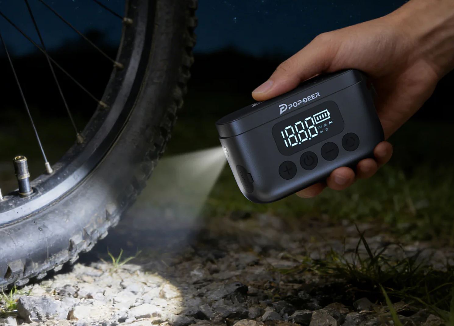 A POPDEER P-T01 egy szuperkicsi akkumulátoros pumpa és még akár zsebben is elfér bringázás, rollerezés közben.