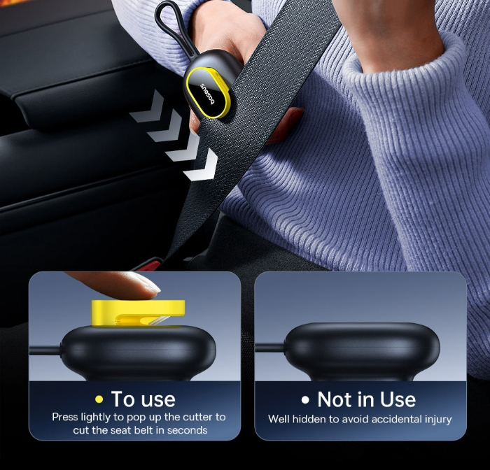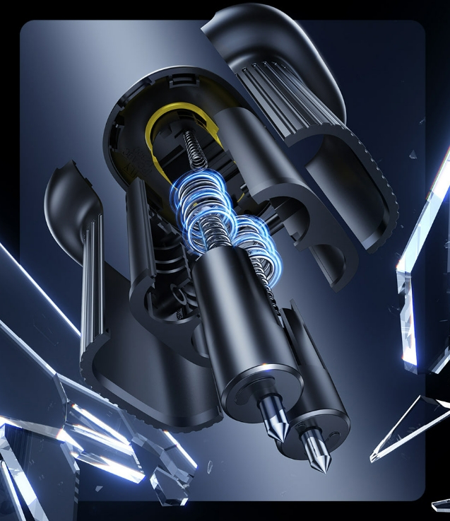 A Baseus újragondolta a biztonsági kalapács fogalmát azáltal hogy, ez a duplafejű 2 az 1-ben autós biztonsági kalapács nem egy általános értelemben vett üvegtörő kalapács, hanem egy igazi életmentő lehet, amelyet minden autóban érdemes kéznél tartani, mert beépített, de elrejthető biztonsági pengével is rendelkezik, így könnyedén kiszabadulhatunk a biztonsági öv fogságából, ha esetlegesen beszorul.