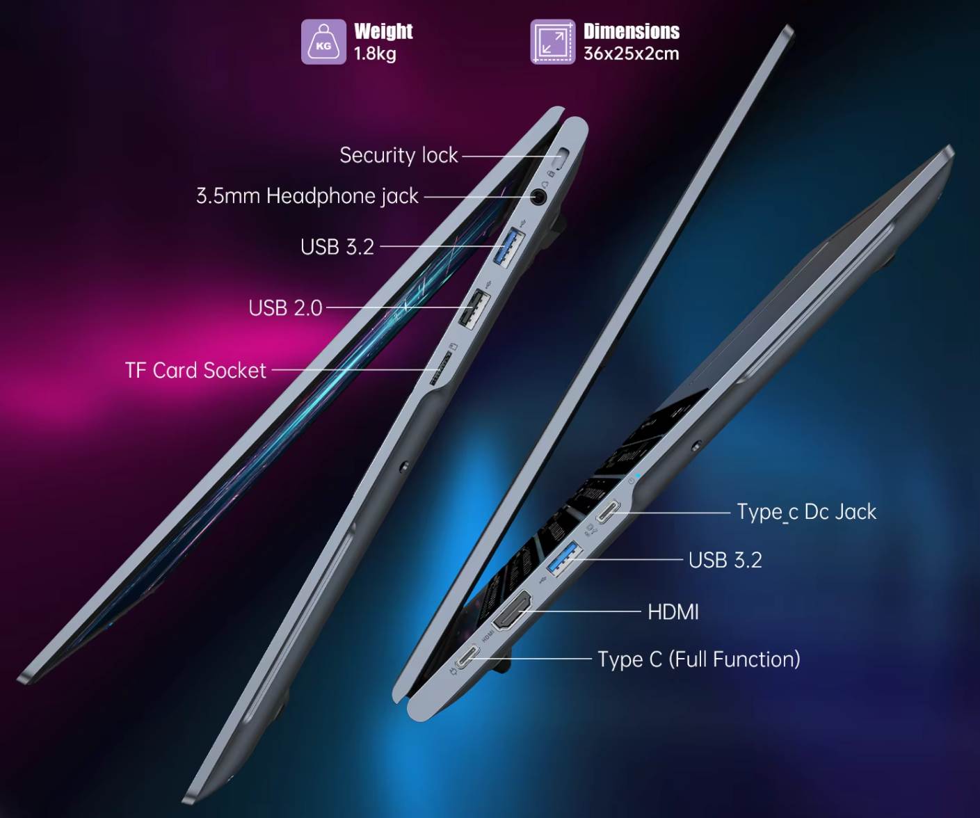 Windows 11 Pro-val érkezik és Type-C bemeneten tölthető, plusz van még egy Type-C, amire monitort is lehet kötni. További bemenetek: