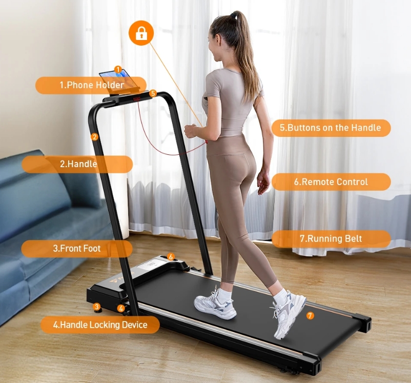 A biztonsági kulcs vészhelyzetben azonnal leállítja a futópadot, a kapaszkodó pedig extra stabilitást ad, ha szükséges. A tablettartóval edzés közben is nézhető videó vagy olvasható tartalom.