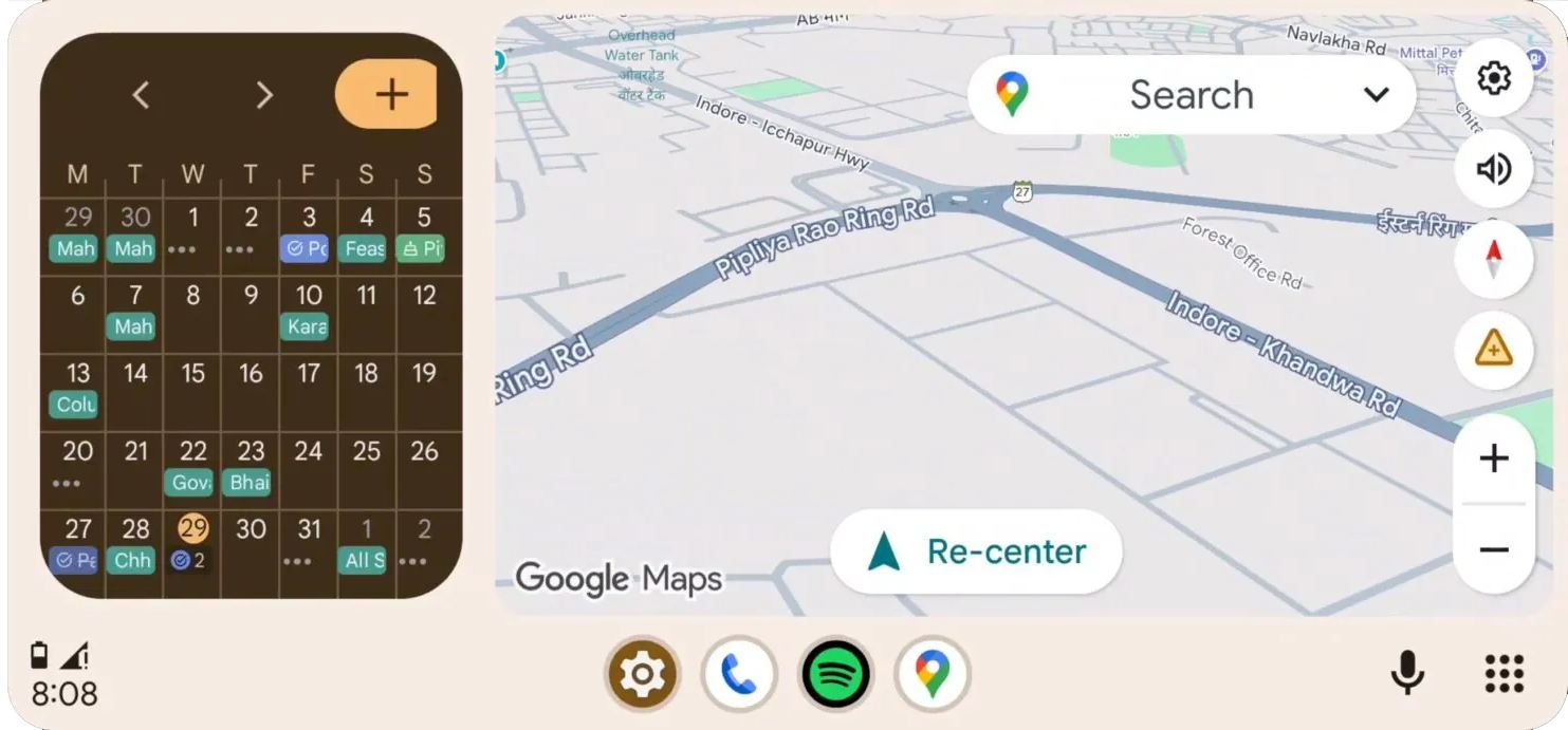 A legfontosabb alkalmazás körülbelül a kijelző harmadát foglalja el az autó infotainment felületén, a többi tartalom pedig a fennmaradó részre kerül. A widgeteket kedv szerint lehet cserélgetni, és megtalálható köztük például a Spotify, a Gemini, az Óra.