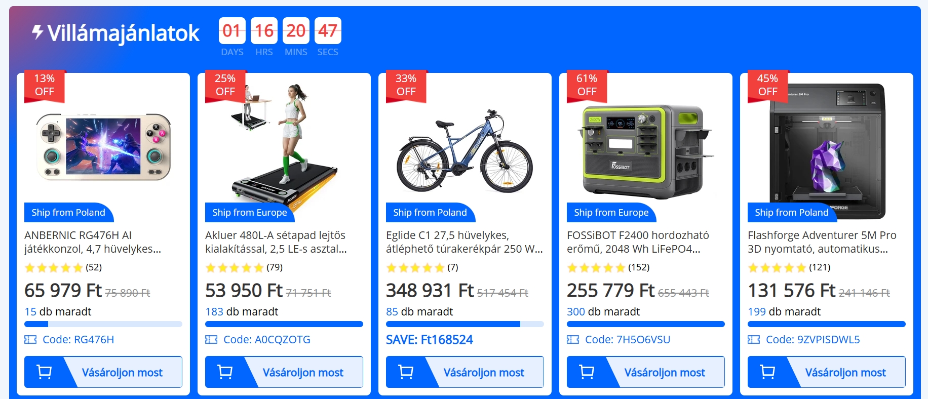 És itt összegyűjtve megtalálhatók a ténylegesen legjobb leárazások is, jellemzően nagyon nagy kedvezménnyel.