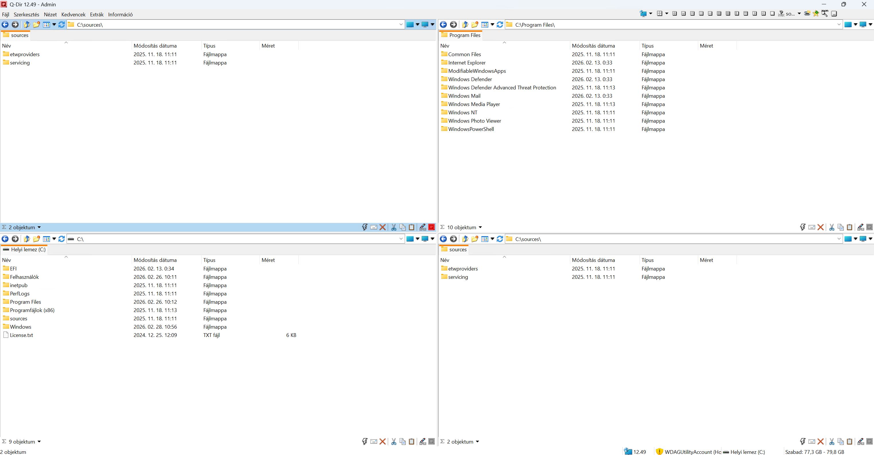 Az elindítása után egy négy ablakos elrendezést kapunk, és mindegyik külön mappára állítható. Így gyorsan lehet a fájlokat mozgatni kettőnél több mappa között.